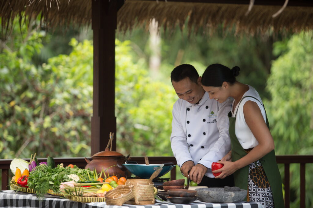 Take home more than memories at Emana Abian Taksu, where Bali’s culinary heritage comes to life. Join our authentic cooking class for a chef-guided market tour, handpick fresh ingredients, and master the art of crafting Balinese dishes infused with exotic herbs and timeless flavors.