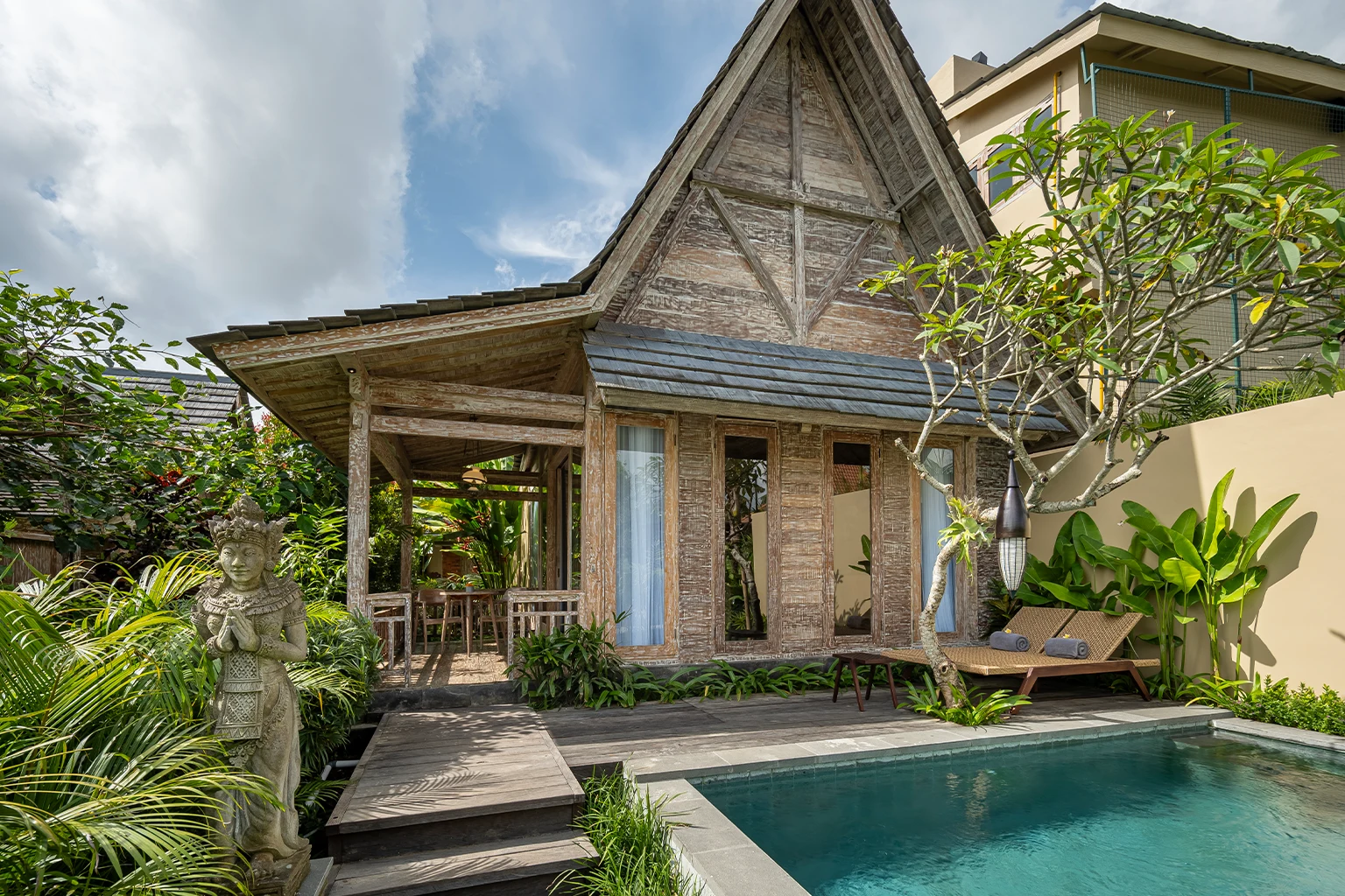 Find your sanctuary in our One Bedroom Private Pool Villa, offering 80 sqm of modern comfort overlooking serene rice paddies. Ideal for couples or small families seeking a peaceful retreat.
