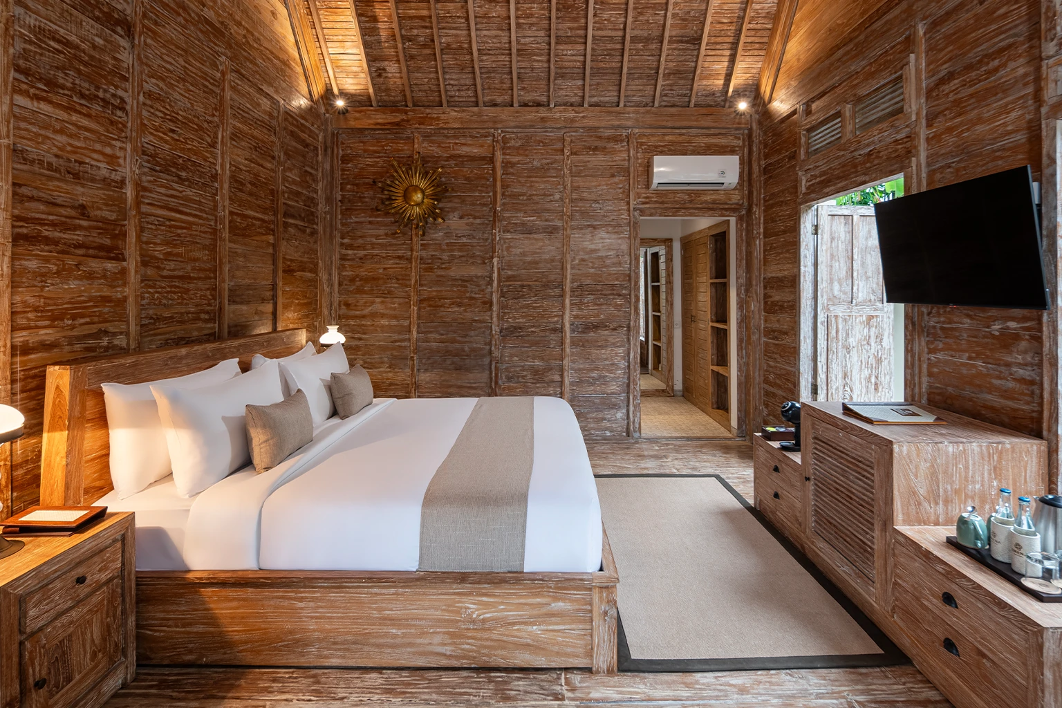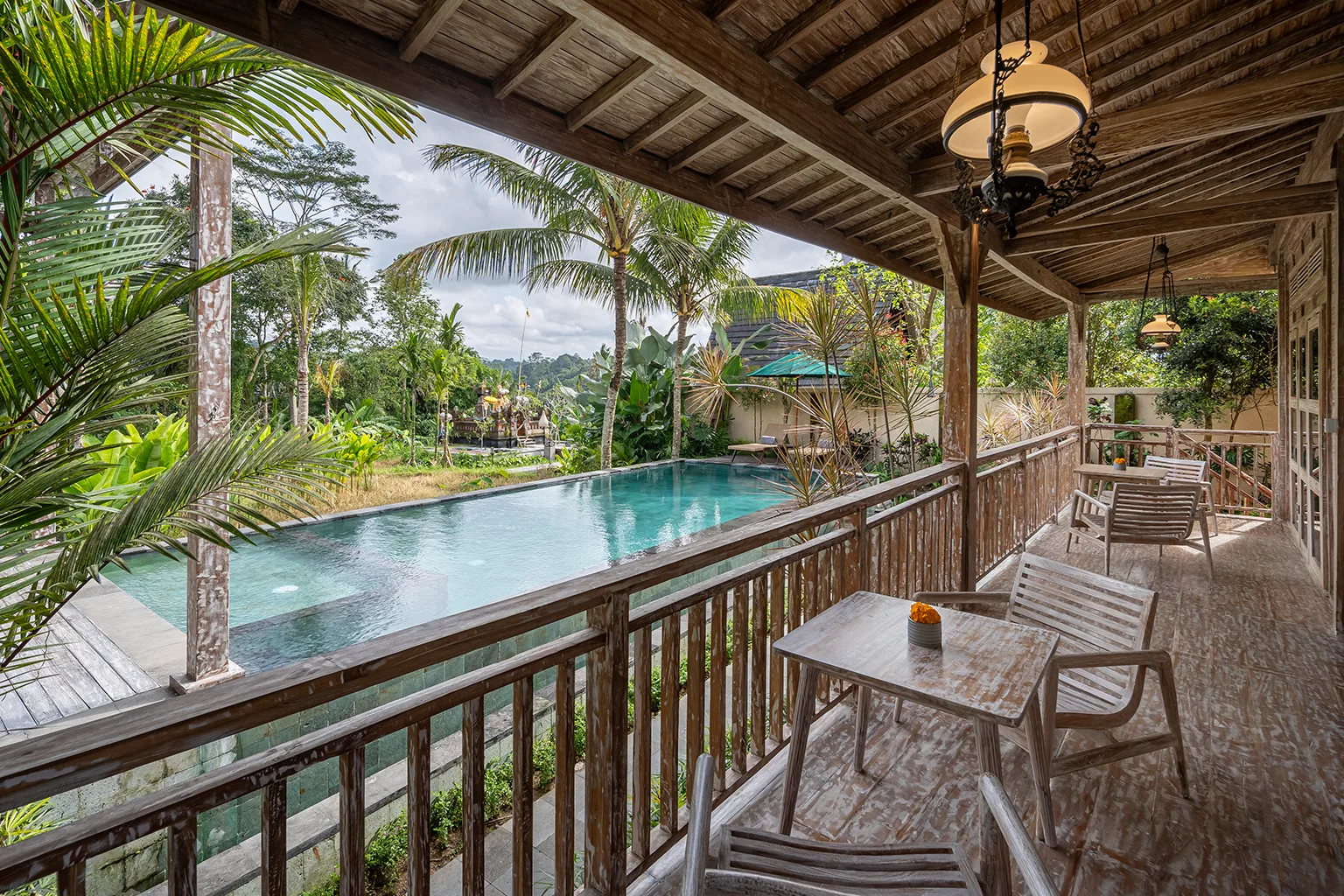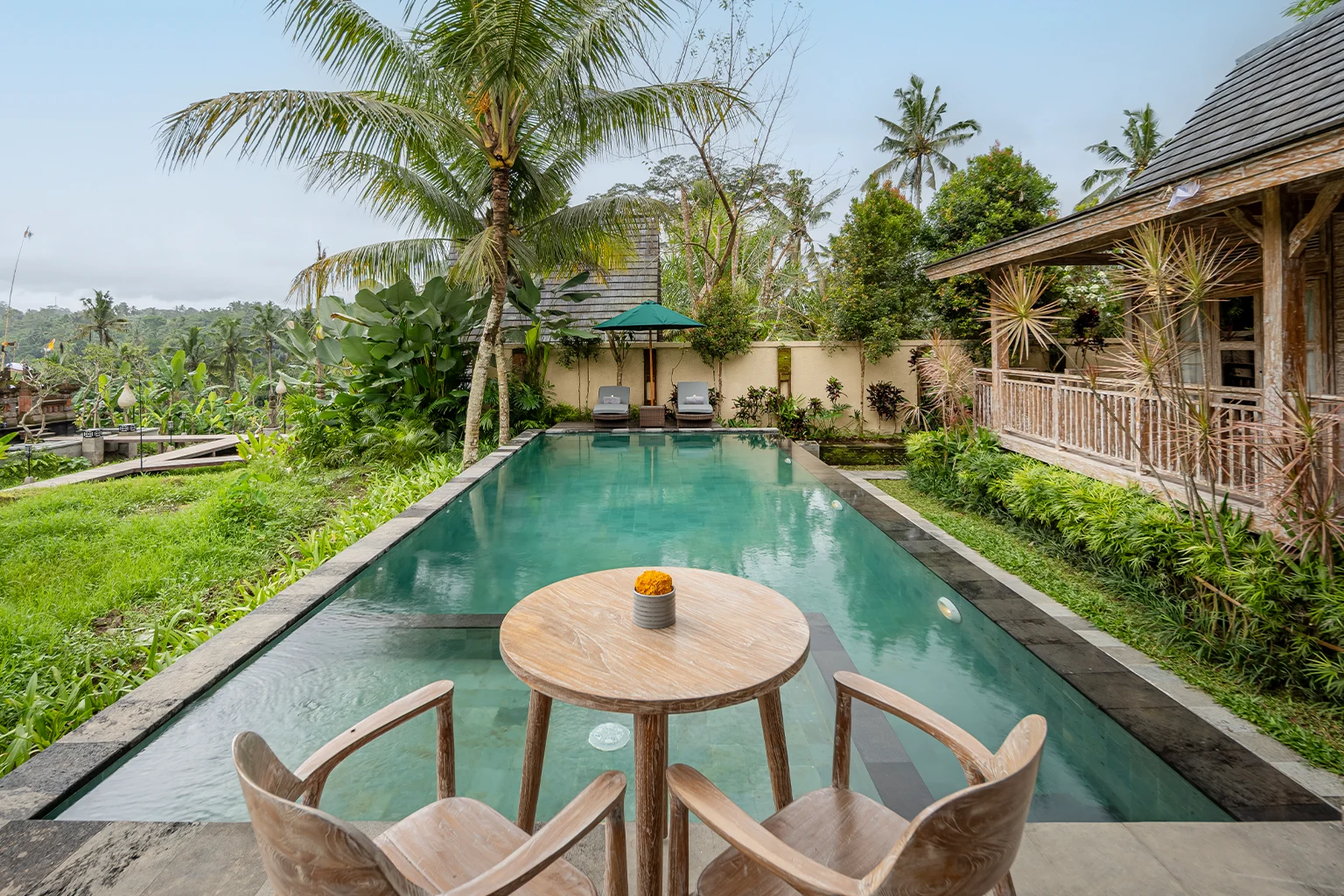 Stay in our Two Bedroom Private Pool Villa, a 120 sqm retreat where generous space opens to a private pool overlooking rice paddies and tropical greenery. Designed for families or friends, it blends modern comfort with serene surroundings, inviting you to relax, connect, and create lasting memories together.